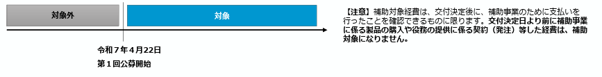 補助金の公募開始(=公募要領公開)日以降に初めて取り組んでいる事業について、「新規性」を有するものと判定します。