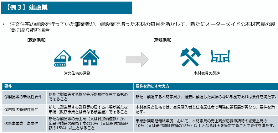 新事業進出要件を満たすためには、以下の①~③のすべての要件を満たす事業計画を策定する必要があります。